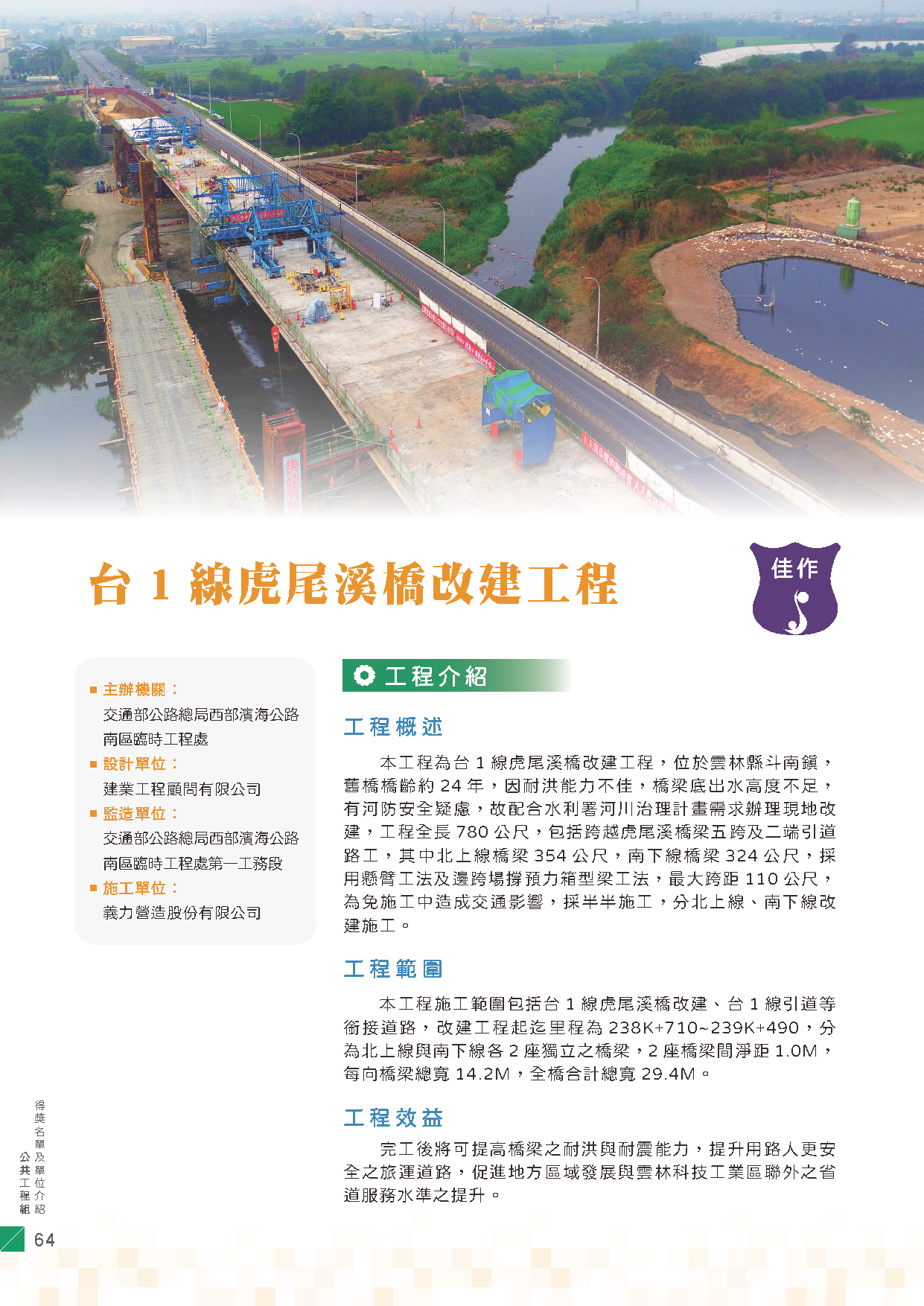 Supervision:The First Construction Section, West Coast Expressway Southern Region Temporary Engineering Office, Directorate General of Highways, MOTC.