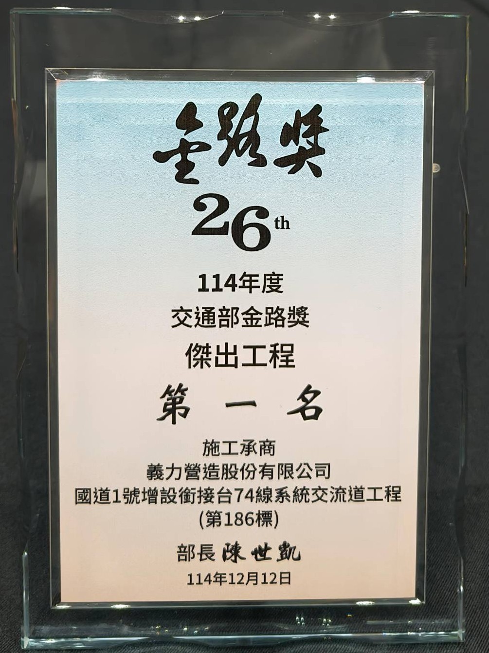 【114年】榮獲 交通部金路獎 傑出工程第一名