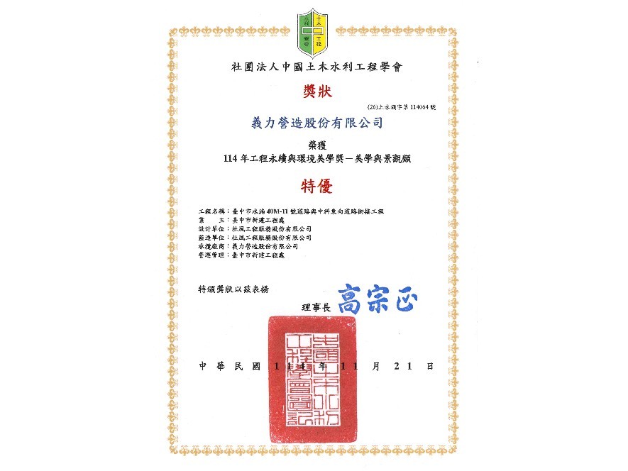 【114年】榮獲 工程永續與環境美學獎-美學與景觀類 特優