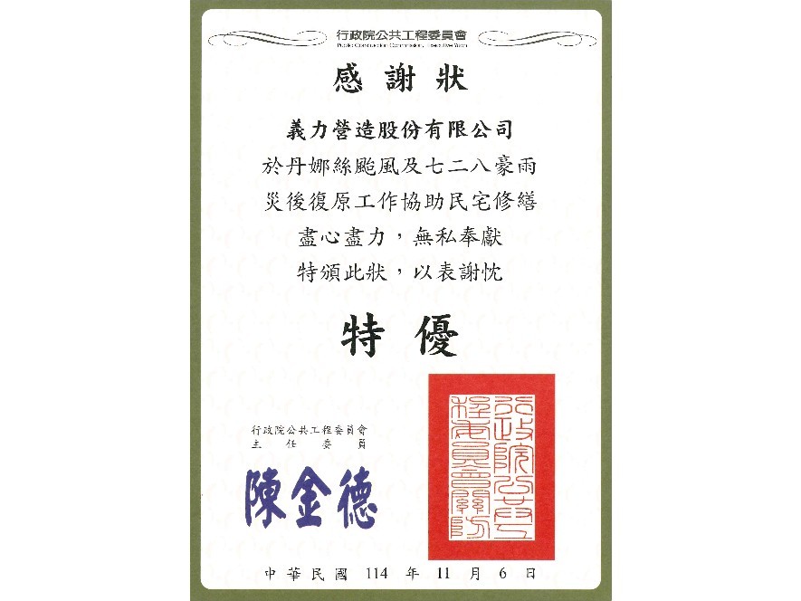 [114年]行政院公共工程委員會 感謝狀