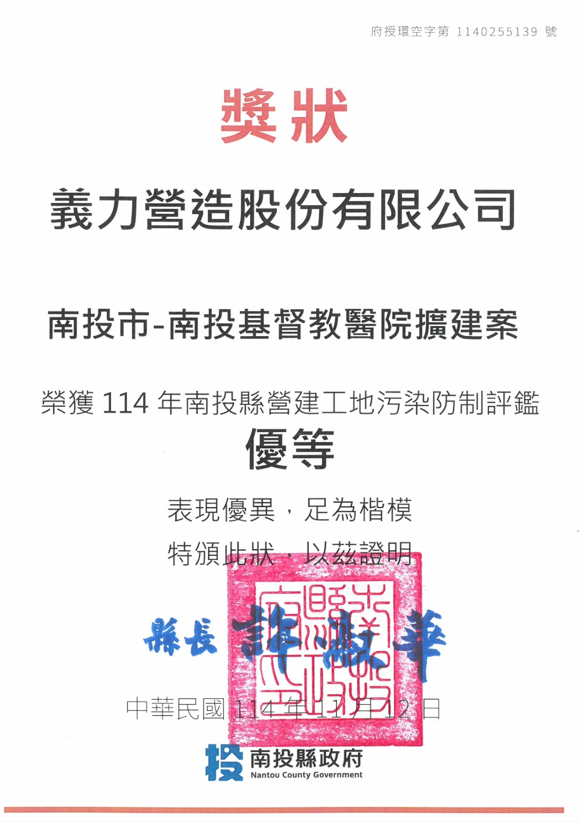 「114年」南投縣營建工地污染防制評鑑