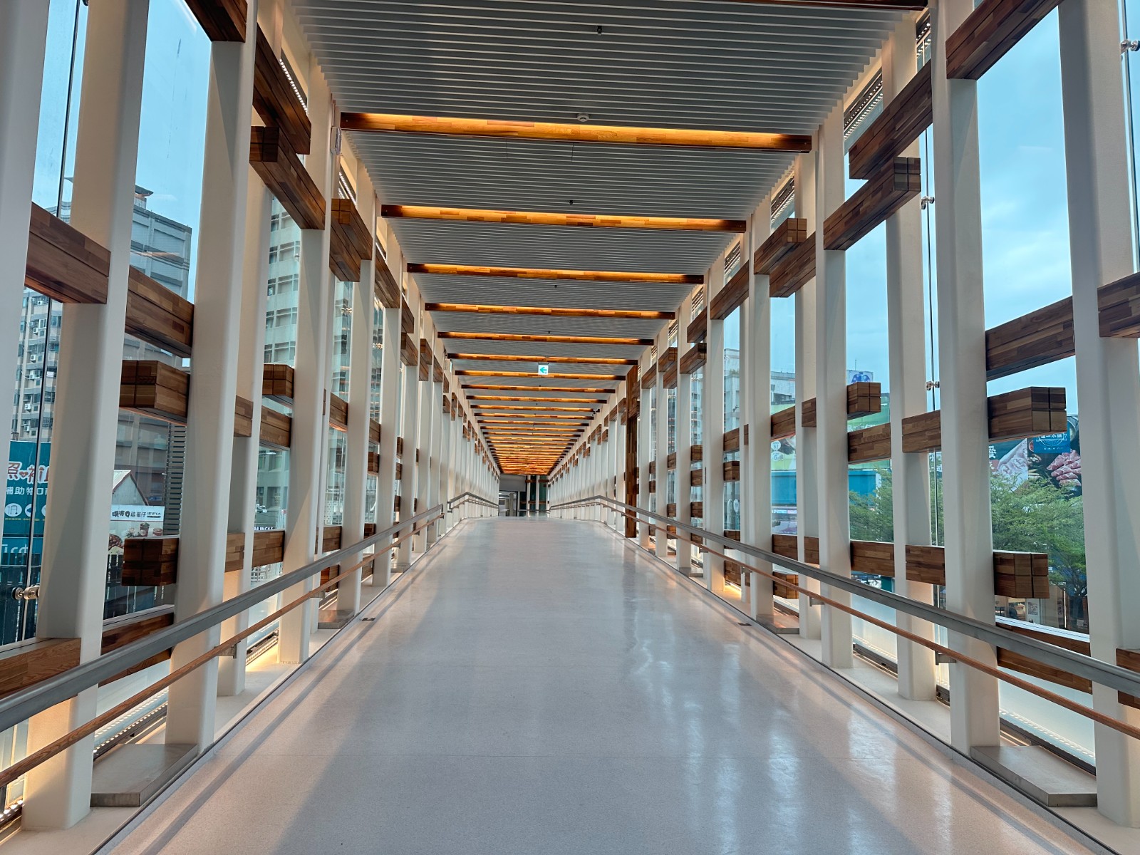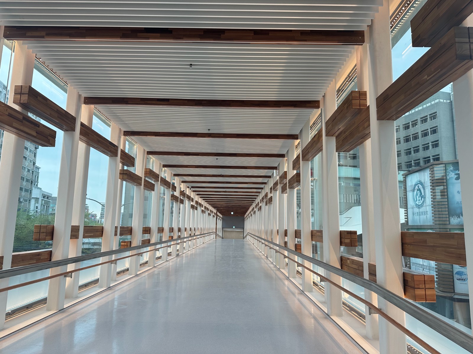 這座天橋,不只是連接兩棟建築的交通設施,更是一段回應城市需求的安全工程。過去該路口因人車頻繁交織,為事故高風險區域,工程啟用後,透過人車分流與動線優化,實質改善就醫環境與通行安全。同時,廊道導入智慧化輔助設計,針對長者、術後病患及行動不便者提供更友善的通行體驗,讓工程不僅止於結構,更延伸至使用者的每一步感受。