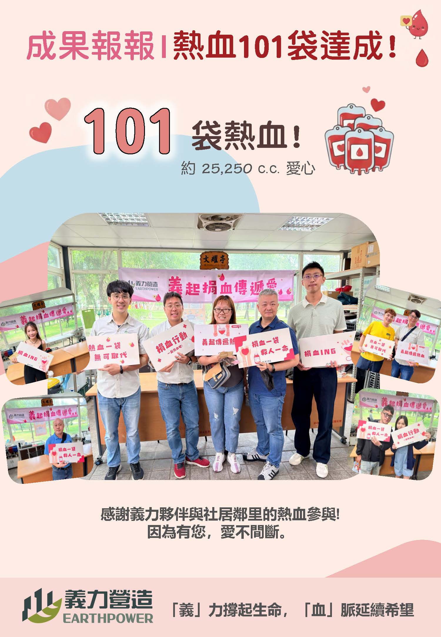 活動當日,在公司同仁與社區民眾的熱心參與下,順利募集101袋寶貴血液,不僅展現企業關懷社會的責任,也凝聚了企業與地方之間的良好互動與情感連結。每一袋血液,都是延續生命的力量,也是我們攜手為社會付出的具體實踐。